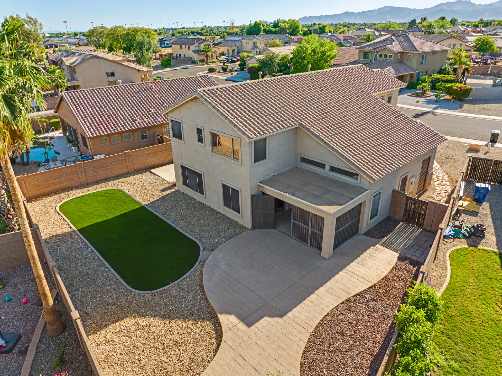 Captivate your senses with the perfect blend of comfort and elegance at 16317 N 152nd Ave, nestled in the heart of Surprise, AZ. This spacious 2,485 sq ft home offers an inviting sanctuary with its four generously sized bedrooms, ideal for both relaxation and productivity. Immerse yourself in the luxury of having three full bathrooms, ensuring privacy and convenience for family and guests alike. The open floor plan seamlessly combines living and dining areas, creating an expansive space perfect for entertaining or enjoying quiet evenings at home. Abundant natural light fills every corner, enhancing the warmth and charm of this beautiful residence. A well-appointed kitchen awaits your culinary adventures, providing ample room to create and share delightful meals. Step outside to a fully redone backyard featuring brand new turf, creating a fresh, low-maintenance outdoor retreat perfect for morning coffee, play, or sunset relaxation. Located in a vibrant community, you’ll have easy access to shopping, dining, and local attractions. Embrace the tranquility and modern conveniences this home offers, promising an unparalleled living experience. Make 16317 N 152nd Ave your next destination, where comfort meets style in the most delightful way.